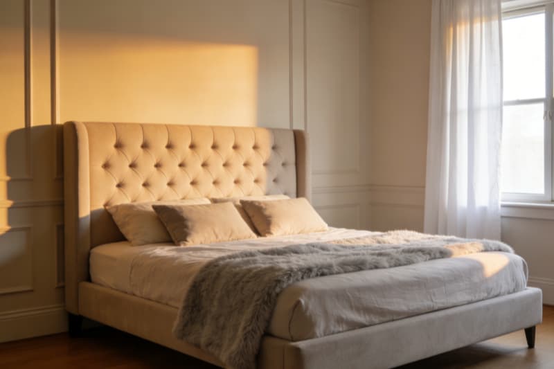 快適性とデザイン性は確かに優れていますが、その分、手入れの手間と経年変化を受け入れる覚悟が必要です。ホコリに敏感な方や、「できればベッドフレームは長く使いたい」と考えている方は、他の素材——特に木製ベッドフレームも選択肢として検討してみる価値があります。