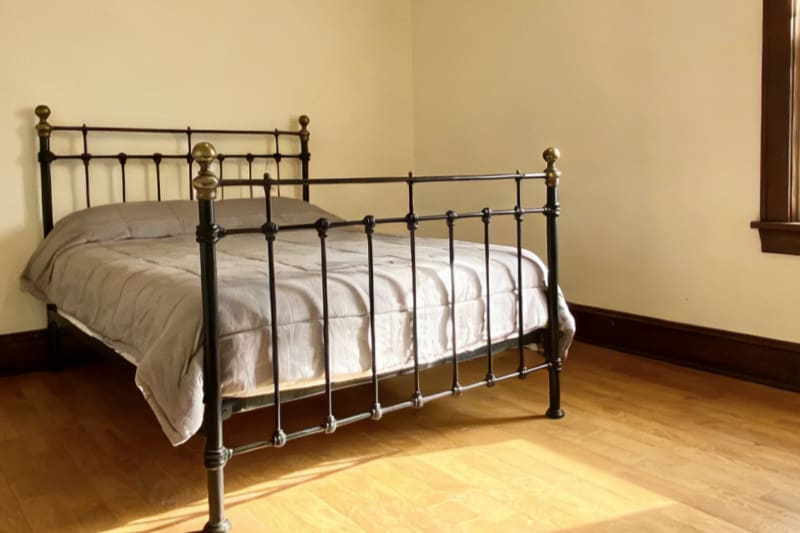 金属製ベッドフレームは頑丈そう。でも、静けさは保てる?
