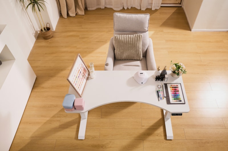 電動昇降機能を備えたネイルテーブルであれば、天板の高さをスムーズに調整できるため、施術スタイルを柔軟に切り替えることが可能です。