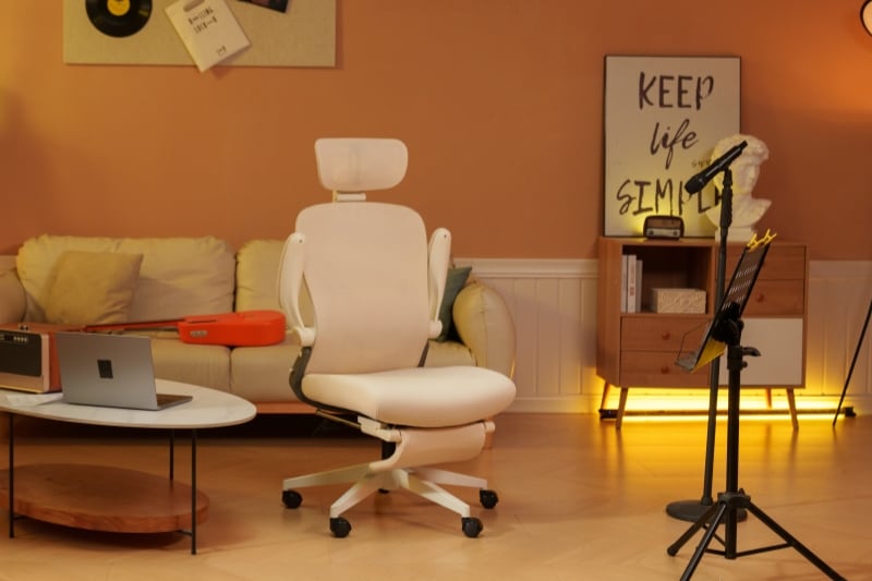 「高機能すぎる椅子は必要ないけど、コスパもデザイン性も重視したい」という方におすすめ。メッシュ素材仕様、収納式オットマン付きで、限られたスペースにも対応しています。カラー展開が豊富(アイボリー、グリーン、ブラックなど)で、インテリアにも馴染みやすい点が魅力です。
