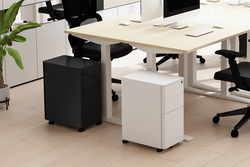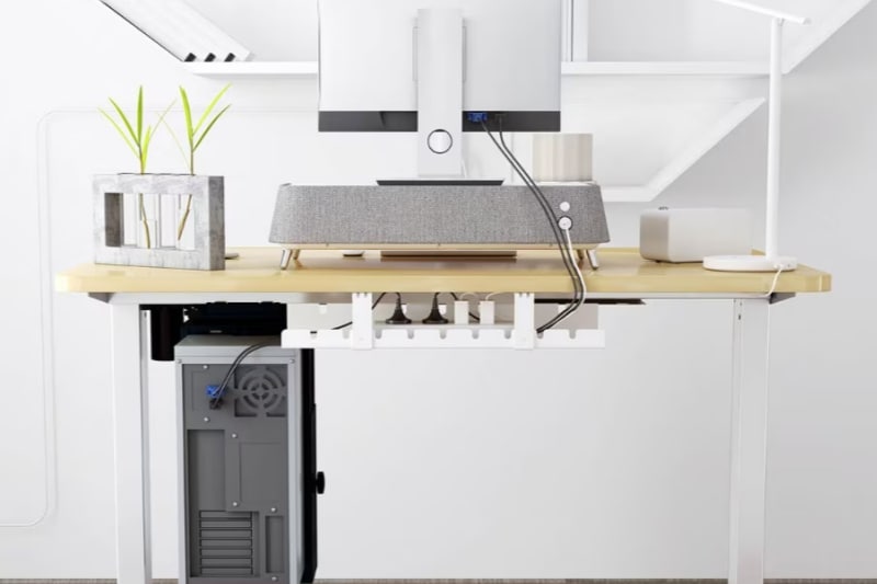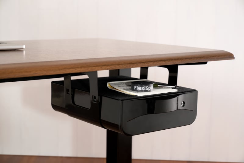 多くの昇降デスクはシンプルな構造ゆえ、引き出しや棚が備わっていない場合がほとんどです。その結果、文房具や小物、ガジェット類がデスク上に散らばり、デスク周りが雑然としてしまうケースも少なくありません。