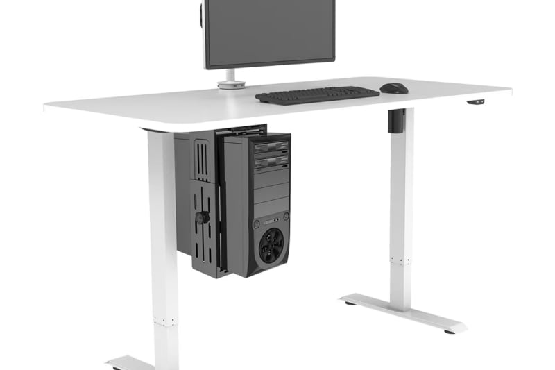 CH1は、PC本体を天板下に吊り下げて設置することで、デスク周りをすっきりと保ちながら、床掃除や配線管理をしやすくするアクセサリーです。