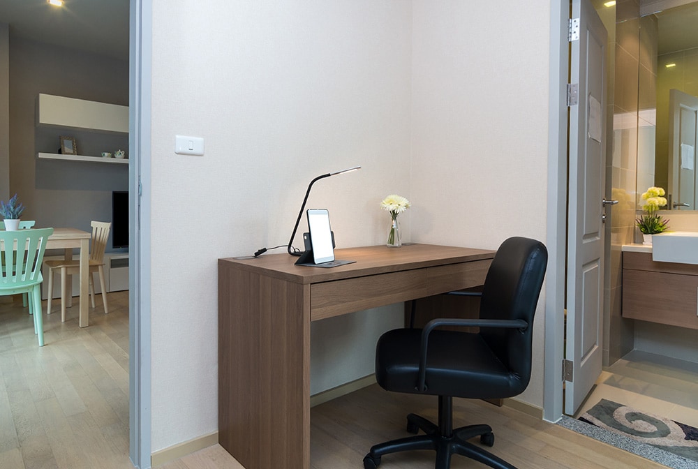 クローゼットの中を片づけて、その場所に仕事用机を設置します。品質のよい仕事用椅子と吊り下げ式の机を組み合わせるのもとても良いでしょう。目的を果たすためにクローゼットが適切に装備されていることも確認しましょう。