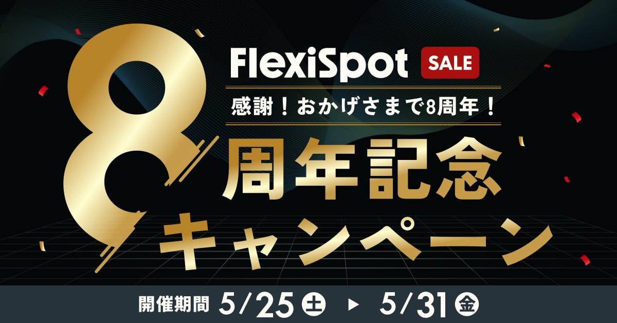 【FlexiSpot】日頃のご愛顧に、感謝を込めて8周年記念キャンペーン5月25日(土)より開催。