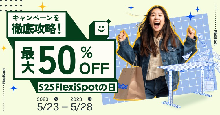 525FlexiSpotの日チャンス到来!年に1度のお祭り騒ぎ!「525FlexiSpotの日」が今年もやってまいります。5月23日~5月28日の期間中は忘れずにご参加を!お得な情報を要チェック!