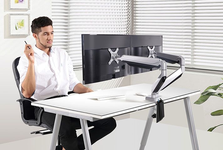 スクリーンにモニターマウントを取り付けるとホームオフィスの人間工学的観点を高めることに役立ちます。スクリーンをさまざまな角度に配置できるため、ディスプレイを見る際の目や首への負担を軽減することができます。また働く際に姿勢が悪くなることによって発生する腰痛を防ぐことができます。