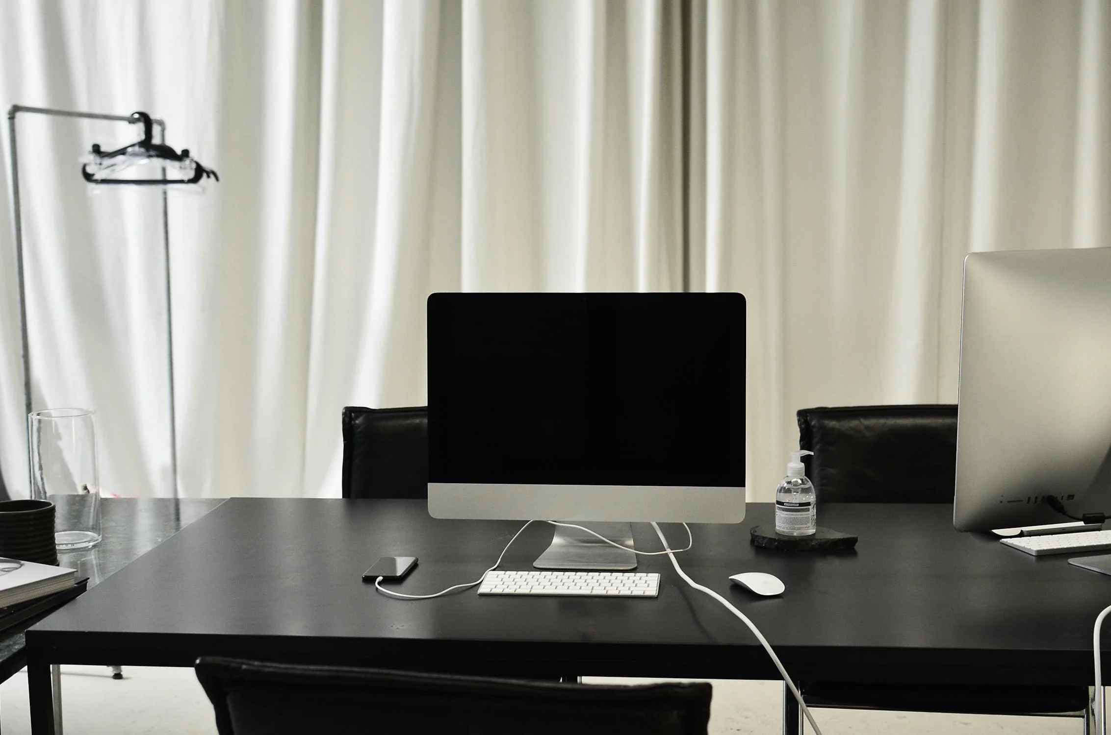 ベンチや低めのソファを滑り込ませて、デスクの下のスペースを活用しましょう。来客用の座席を増やしたり、靴やバッグなど余分なものを見えない場所に収納するのに便利です。