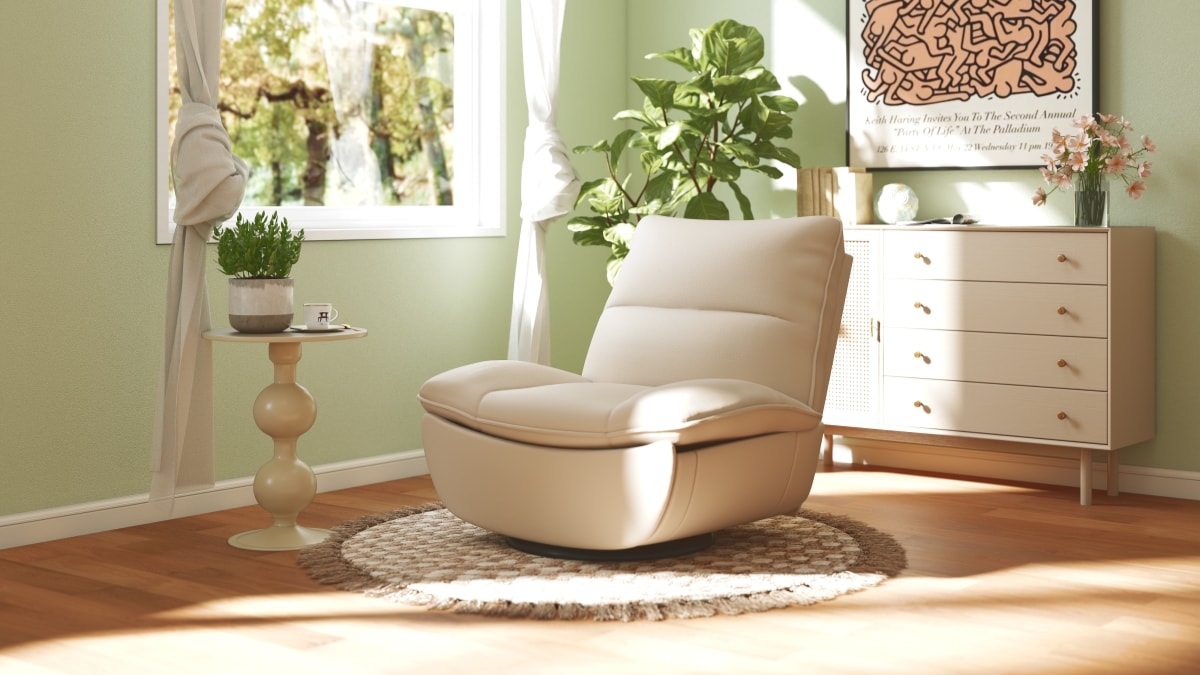 Lotusはただのチェアではありません。座るたびに違いがわかります。スウィベル(回転)、ロッキング(揺れ)、リクライニング(背もたれの角度調整)をシームレスに融合したこのチェアは、会話のために向きを変えたいときも、静かに揺れたいときも、完全に横になりたいときも、あなたの動きに自然に応えてくれます。