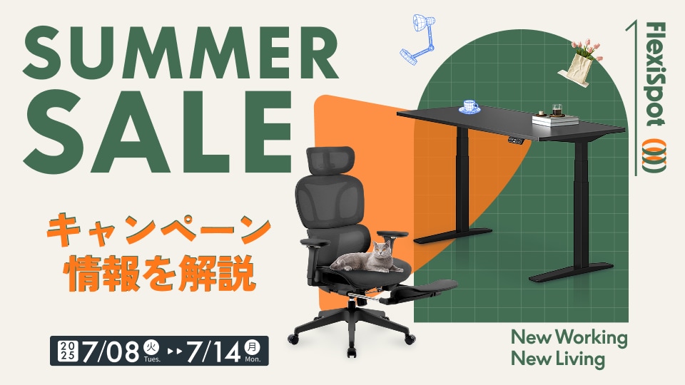 夏の暑さが本格化する7月、FlexiSpotでは快適な暮らしと働き方をサポートするため、期間限定のサマーセールを開催中です!
